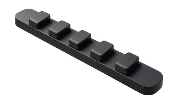 Magnetic cable organizer strip with five adjustable clips in dark gray.