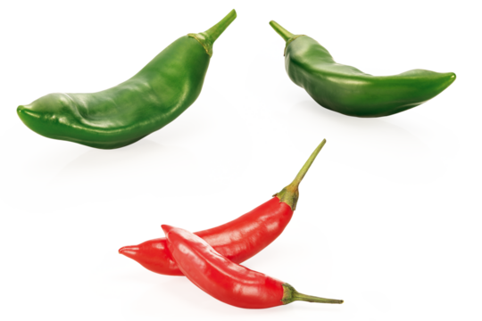 pimentas verdes e pimentas vermelhas em fundo transparente