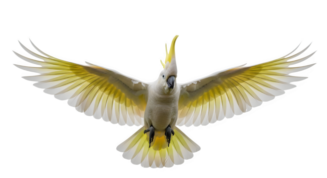 Majestic Cockatoo taking flight its vibrant yellow crest catching the light in a moment of on transparent background