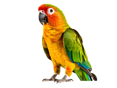 a colorful bird standing on a white background