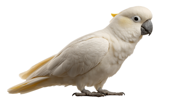 A full view of a cockatoo isolated on transparent background, real photo, stock photography, high resolution