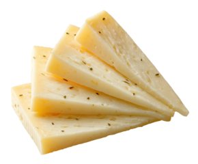 Five Triangular Slices of Kashar Cheese on Transparent Background