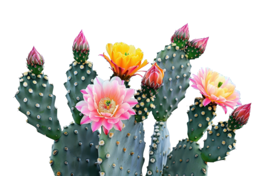 Blooming pink cactus flowers isolated on transparent background - stock png.