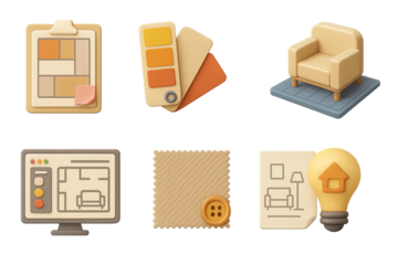 Home interior design 3d icons set – decor, style, and furniture visuals