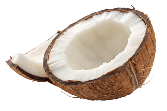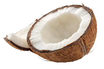 Fresh tropical coconuts halves close up nutritious ingredient food item isolated on transparent background