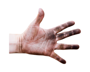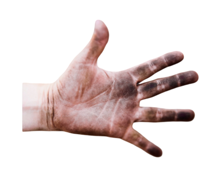 Open human hand palm up with fingers slightly curled isolated on a transparent background