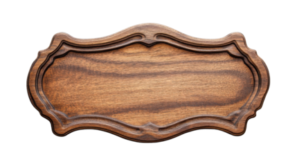 Collection of carved wooden nameplate or signboard isolated on a transparent background, cut-out, PNG