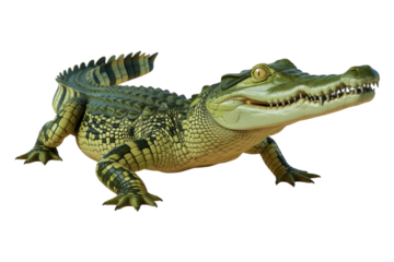 A detailed 3D render of a green crocodile, isolated on a transparent background. background removed