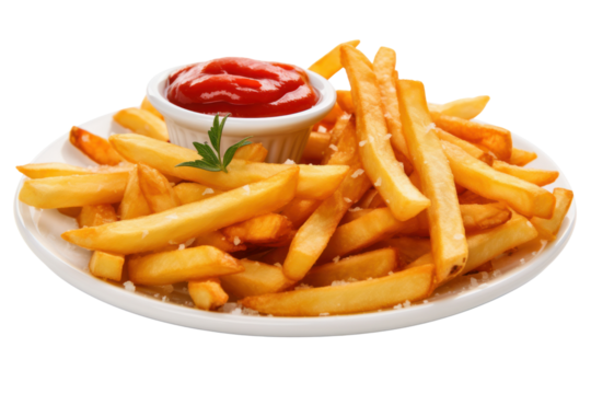 Golden-brown French fries seasoned with a blend of Cajun spices isolated on white background