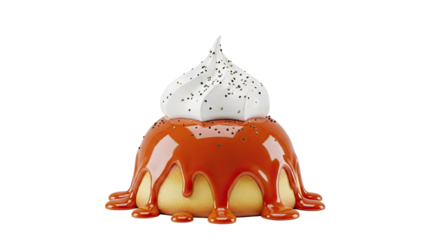 3d illustration of a delicious caramel cake with whipped cream, perfect for food and bakery-related projects