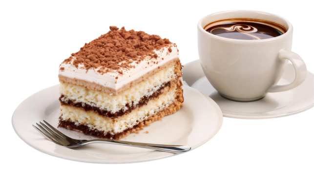 Cups of Coffee with Donuts and Cake Slices on Transparent Background