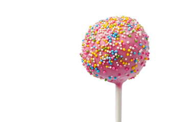 Pink cake pop with sprinkles on a White or Transparent background for dessert