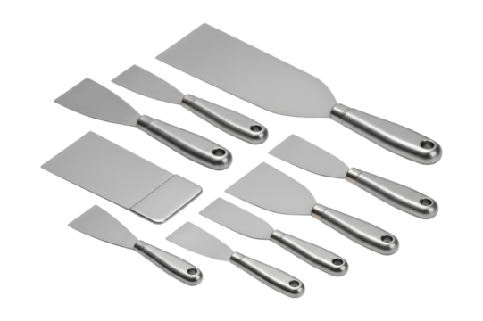 Stainless Steel Scraper and Spatula Tools, PNG Set Collection, Isolated on Transparent Background