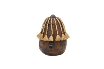 African calabash mask with raffia