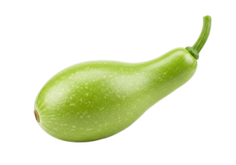 Close up of a fresh green bottle gourd vegetable isolated on transparent background