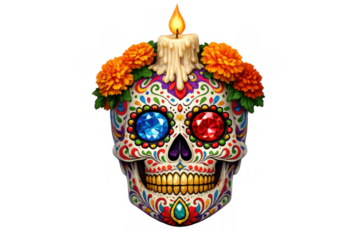 Dia de los Muertos sugar skull, isolated on a white background