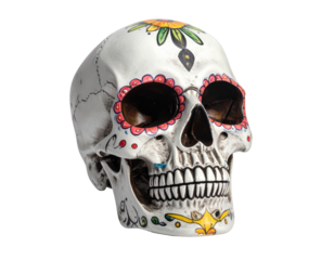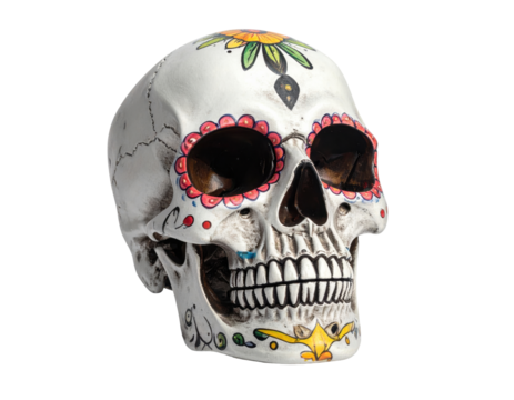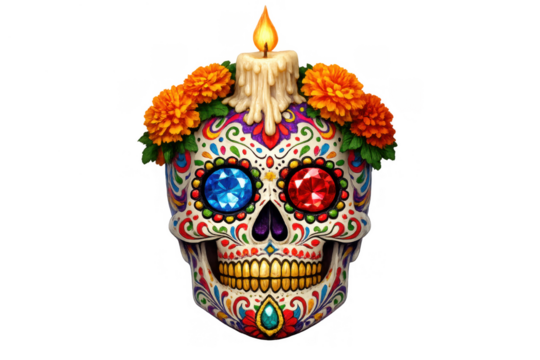 Celebrate Dia de los Muertos with vibrant sugar skulls and marigold flowers, a cultural tradition honoring loved ones with colorful artistry and remembrance