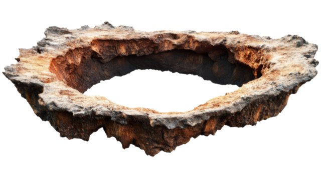 Circular crater resembling volcanic caldera or impact event on transparent background