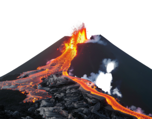 lava river flowing through dark volcanic landscape isolated on white background PNG, AI GENERATED