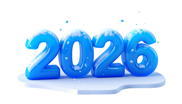 Two different angles of a 3d rendered desk calendar displaying the year twenty twenty six on transparent background