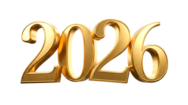 Glossy gold 3d numbers 2026 perspective view for calendar