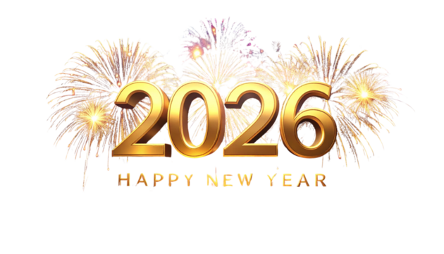 Happy new year 2026 greeting on transparent background