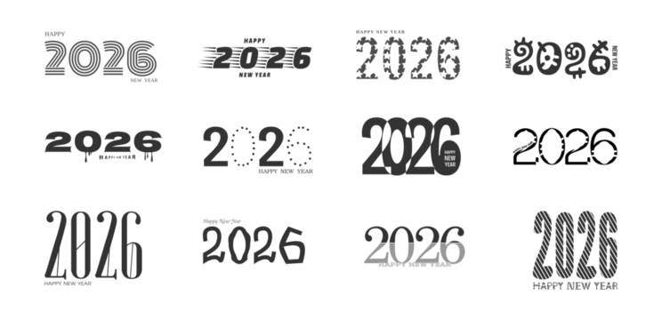 Happy New Year 2026 Typography Pack | Stylish Number Designs for Cards, Posters & Festive Graphics
