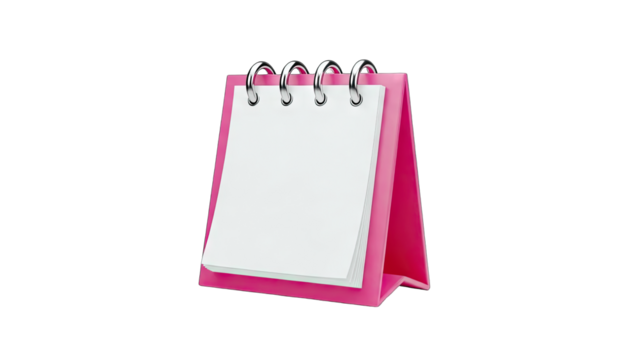 Pink Desk Calendar with White Blank Pages and Spiral Binding on a Transparent Background Ideal for Planning and Organization