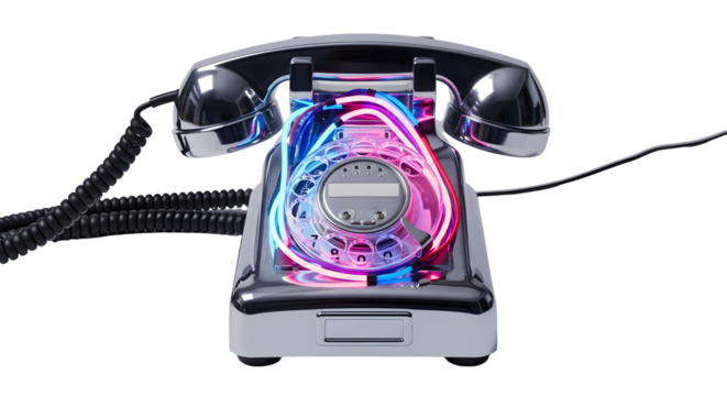 Retro telephone with vibrant neon lights inside, symbolizing communication and nostalgia.