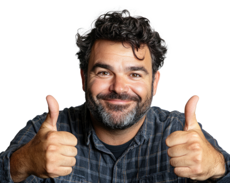 Happy man giving two thumbs up gesture on isolated background