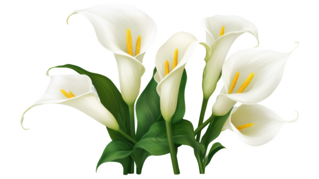 arrangement of white calla lilies showcasing their elegant shape and soft texture against a clean background ideal for floral design or decorative purposes