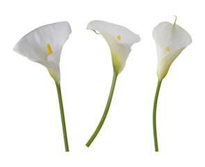 Vibrant yellow calla lilies bloom beautifully isolated on a clean