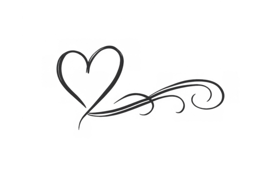 Hand drawing heart love symbol with elegant calligraphic swirl flourish element on transparent background