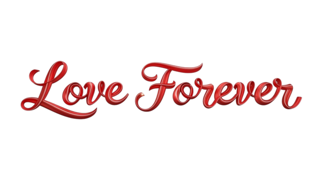 Love Forever Deep Red Metallic Script 3D Text Isolated on White Background for Romantic Graphics