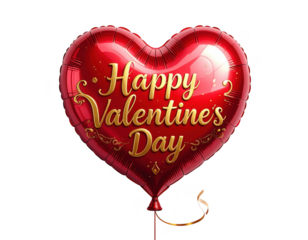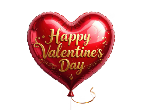Heart shaped balloon with gold Happy Valentines Day text,white background