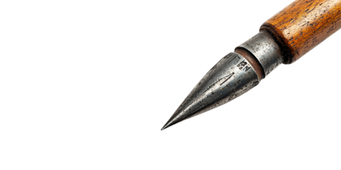 Vintage Metal Calligraphy Nib Pen With Wooden Handle. Traditional Writing Instrument Isolated On Transparent Background