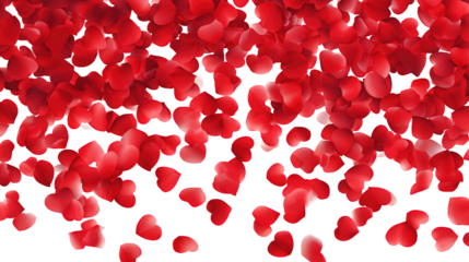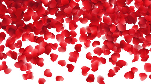Love valentine background with red petals of hearts on transparent background. Vector banner, postcard, background.The 14th of February. PNG image
