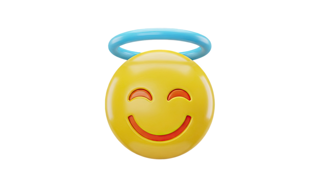 3d smiling emoticon with halo on transparent background