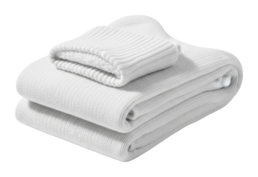Soft white towels stacked in cozy bathroom home minimalist isolated on transparent background