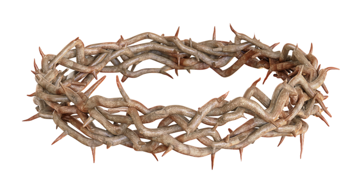 Thorny crown of woven branches isolated on transparent background. Crown of thorns isolated on white background.