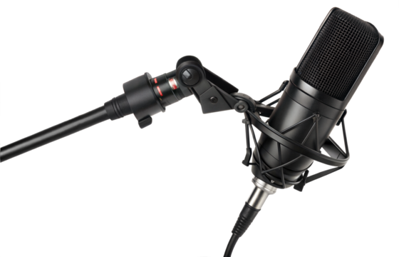 Black studio Microphone on transparent background or png.