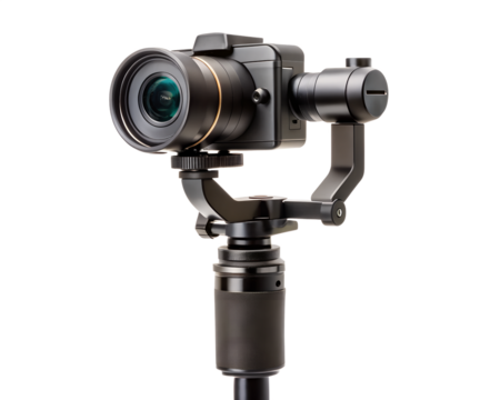 Camera tripod isolated on transparent background for photography, videography, or creative studio design projects.