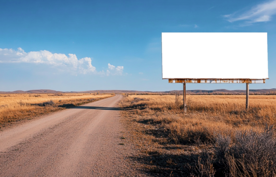 Valla Publicitaria en Camino Rural con Cielo Despejado