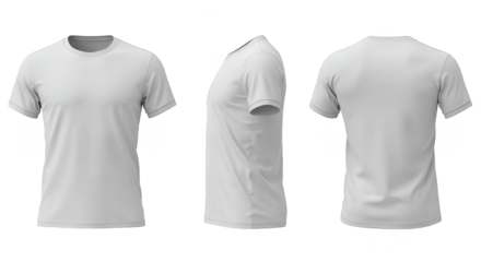 Camiseta blanca lisa parte delantera y trasera sobre fondo blanco. Generado con IA