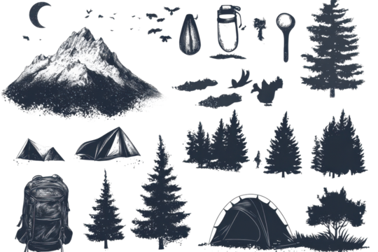 Minimalist flat design nature symbols on transparent background