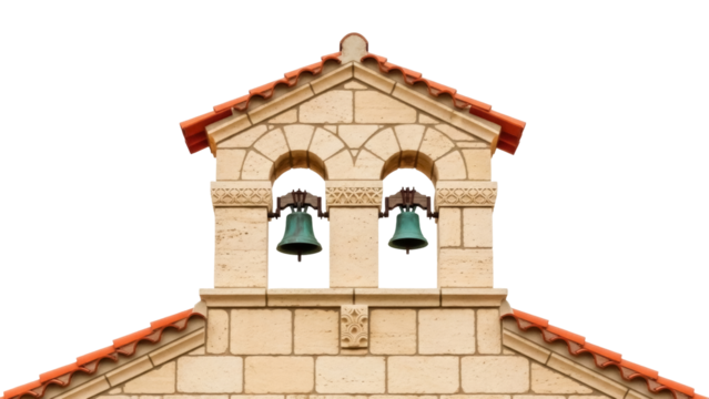 Rustic Stone Chapel with Bell Tower on Transparent Background