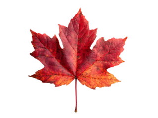 Vibrant red autumn leaf with detailed transparency