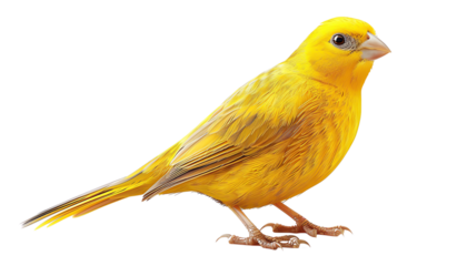 A vibrant yellow canary perched on a branch, isolated on a transparent background