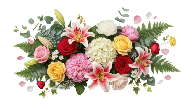 Vibrant yellow flower petals scattered on a pristine white background, forming a cheerful and fresh natural pattern, symbolizing delicate beauty and the joyful essence of spring season