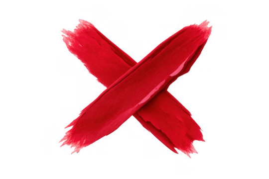 Red x mark symbol isolated on transparent background